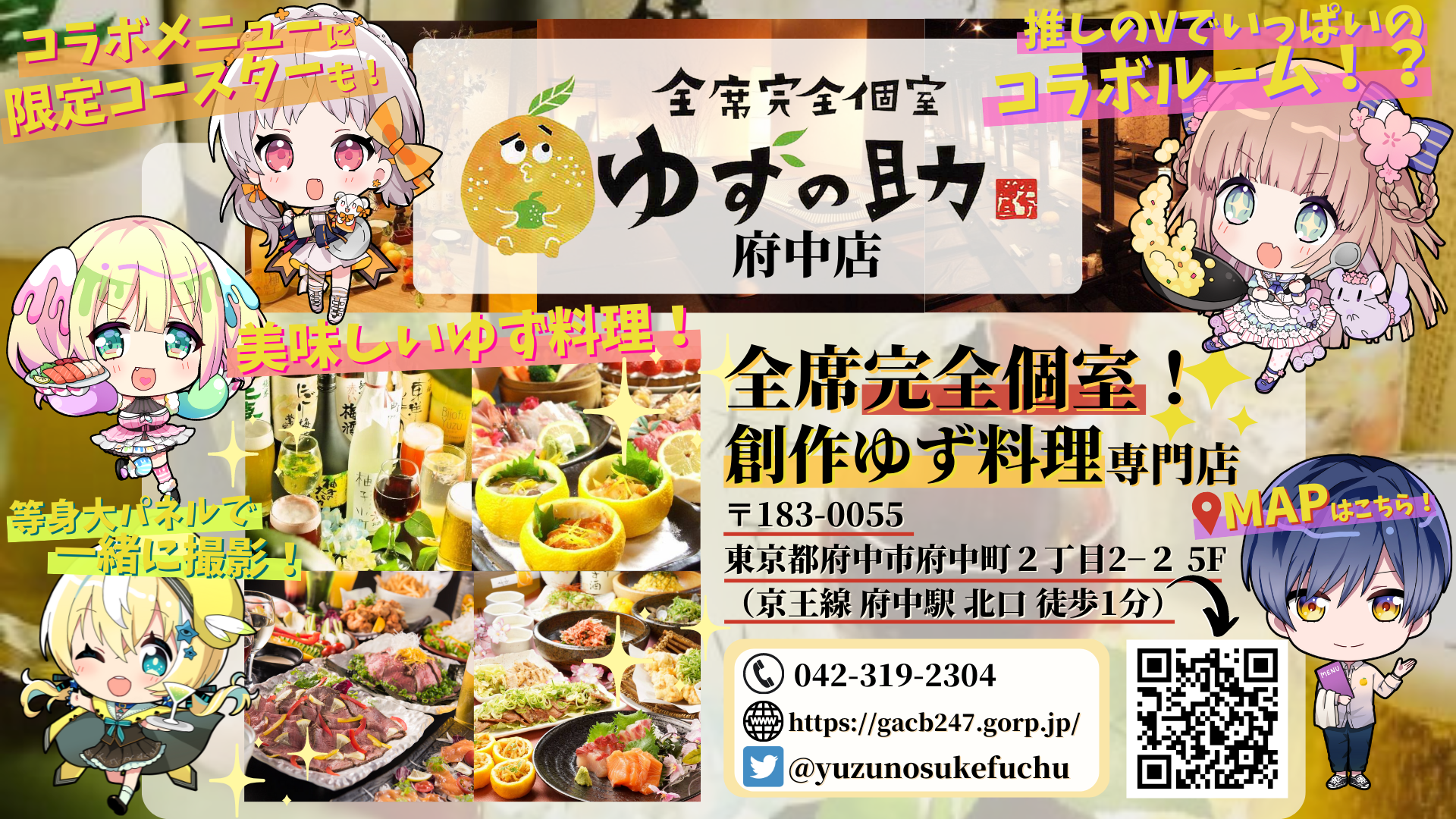 居酒屋「ゆずの助 府中店」様にて、総勢9名のVtuber様によるコラボイベントを企画させていただきました。