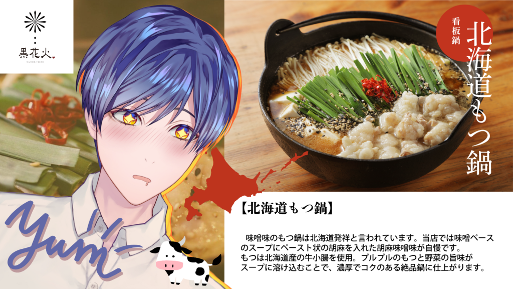 株式会社uyet様の バーチャル物産展の企画にて北海道もつ鍋専門店『黒花火』様とコラボし、オリジナルグッズ付きのコラボ商品を販売させていただきました。