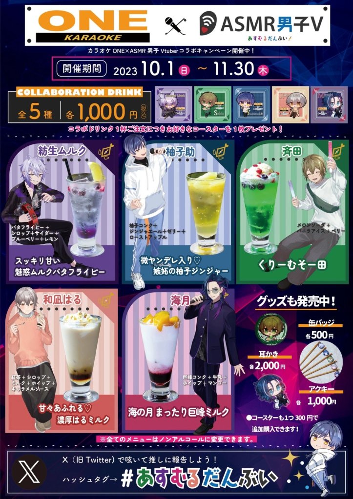 カラオケONE様とあすむるだんぶい(ASMR男子Vtuber)のコラボイベントを企画させていただきました。